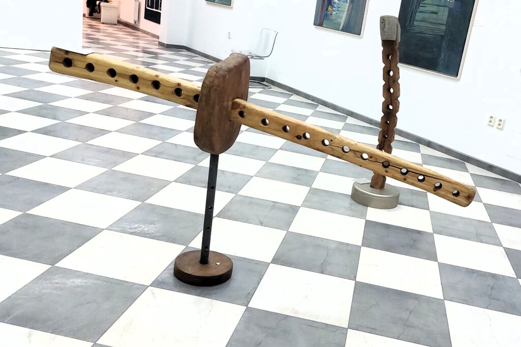 Sochař Tomáš Pergler (www.tomaspergler.cz) je rozený Pražák křt ěný Vltavou, skeptik, jen zřídka ještě optimista. Věčný hledač: Kde je dobře? Kd e jsou ty kořeny? Kde je ta pravlast, ten Ráj, nebo jak se tomu říká, snad někde na jihu ? Tam kde svítí slunce a je tam teplo a lidi se na sebe usmívají? Tak tomu se do práce nikdy nechce, rád by si jen tak snil… Pak ale musí, motory vnitřního pnutí jsou příl iš silné, hrozí přetlakování a exploze. Ten snad nikdy hledat nepřestane, a to i přes t o, že alespoň v tom výtvarném světě svou polohu již našel: vtip, sarkasmus, ironii, ozvuky pradávné historie, sem tam i olezlou fosilii…Dřevo, kámen, papír, ale i kov , drát, ba i ta kožešinka se může hodit: jak se vyplatí býti kramářem! Pouze však materiá ly přírodní umožní sochaři proměnit své vize a sny ve vtipnou klasiku bez televizních instalací a složitých konceptuálních výlevů. Dílo hovoří samo za sebe a varuje i žalu je: pozor na trapnost!